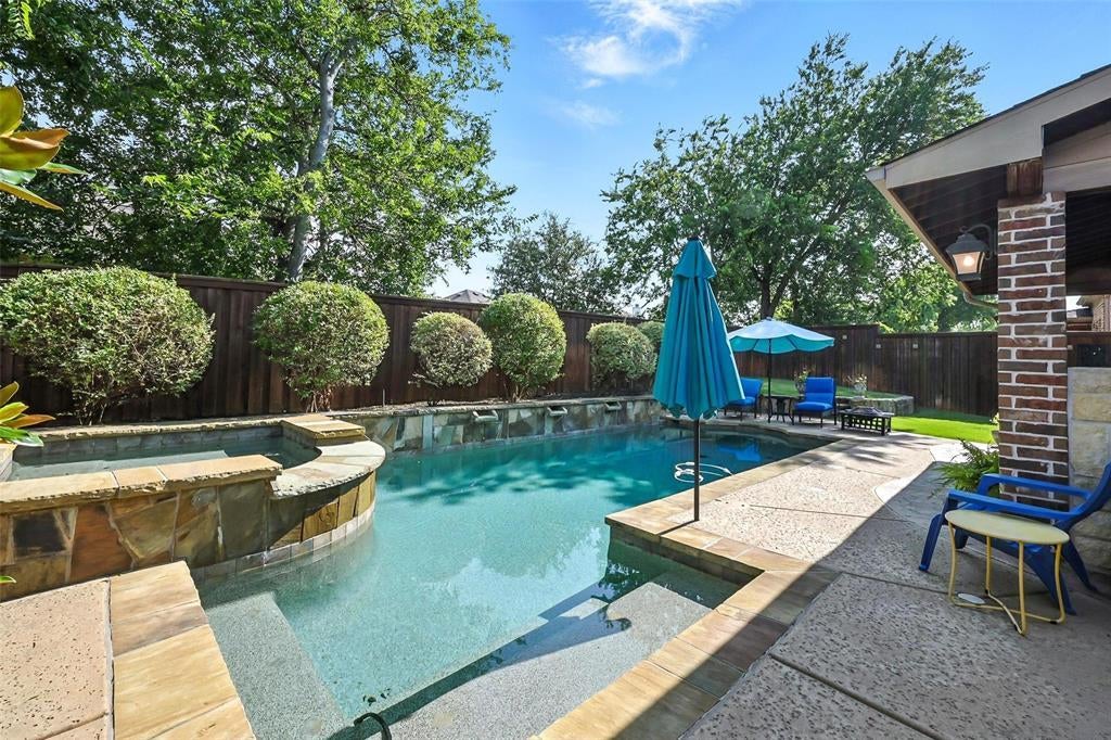 Welcome to this stunning Highland-built home in the prestigious Cascades of Stonebridge Ranch, offering the perfect blend of elegance, function, and resort-style living. With 5 spacious bedrooms, 4 full bathrooms, and a 3-car garage, this home is designed to impress. The grand entry greets you with soaring ceilings, a dramatic curved staircase, and hand-scraped hardwood floors that flow through the study, formal dining, living room, and hallways. A fresh custom interior paint job adds a designer touch that wows throughout. A private office with French doors, formal dining room, and spacious living area with a floor-to-ceiling stone fireplace make this home both luxurious and livable. The gourmet kitchen features an oversized Texas-style island, granite countertops, stainless steel appliances, a 5-burner gas cooktop, tumbled marble backsplash, and a generous breakfast nook. The primary suite is privately located on the main floor and features a spa-like bathroom with a jetted tub, oil-rubbed bronze fixtures, dual vanities, and a custom walk-in closet. A second bedroom with a full bath on the first floor is perfect for multi-generational living or guests. Upstairs, you'll find three additional bedrooms, two full baths, a large game room, and a dedicated media room, offering plenty of space for entertainment and relaxation. Step outside to your own private outdoor oasis, featuring a Foley built saltwater pool and spa, covered patio, and mature native trees providing both beauty and shade—ideal for enjoying warm Texas summers. Additional updates include a new roof in 2020, water heater in 2018, and board-on-board fence in 2019, plus two new HVAC units installed, one in 2021 and one in 2024. Brand new Pentair pool pump professionally installed-2025. Located in the highly acclaimed Stonebridge Ranch master-planned community, residents enjoy access to parks, trails, lakes, tennis, and the beach club. This home is truly a perfect 10—schedule your private showing today!