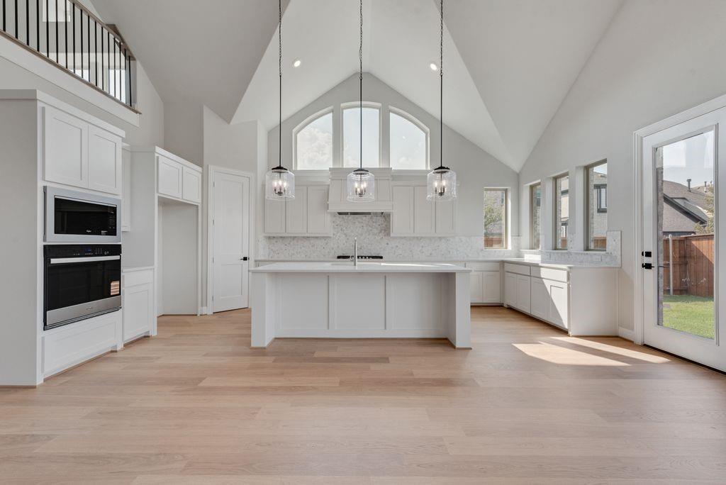 Experience refined living in this brand-new five-bedroom home, ideally located in the coveted Lake Forest community, JUST COMPLETED! Perfectly positioned just off the Sam Rayburn Tollway, this residence offers unmatched convenience to shopping, dining, and top-rated schools, with the local elementary just a short walk away. Designed for modern lifestyles, the home welcomes you with a contemporary exterior and front door, leading into a light-filled interior where a full oak staircase and extensive wood flooring set a warm, elegant tone. The spacious family room impresses with soaring vaulted ceilings and a two-story stone fireplace, flowing effortlessly into a chef’s kitchen complete with a large island, Quartz countertops, Shaker cabinetry, a five-burner gas cooktop with custom vent hood, stainless steel appliances, and a walk-in pantry. An adjacent Butler’s Pantry area adds functional elegance, while the large covered patio invites outdoor entertaining. Throughout the home, 8-foot doors enhance the sense of space and luxury. A dedicated home office or den, downstairs media room, and private guest suite provide flexibility and comfort. The primary suite is a private retreat with a freestanding soaking tub, dual vanities with rectangle sinks, a designer-tiled walk-in shower, and an expansive closet. Upstairs, enjoy a spacious game room, additional media room, bonus area, and three more bedrooms. Lake Forest offers exclusive amenities including a resort-style pool, fitness center, scenic trails, and a serene creekside setting. With a built-in security system, sprinkler system, tankless water heater, R-38 insulation, and Energy Star certification, this home blends style with smart efficiency. Don’t miss the chance to call this exceptional property your own—schedule a private tour today.