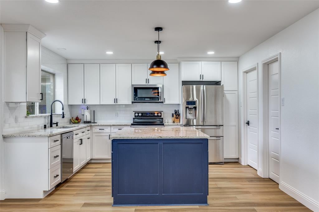 Located in the highly rated McKinney ISD and just minutes from Hwy 380, Hwy 75, shopping, dining, and entertainment, this beautifully renovated and immaculately maintained 4-bedroom, 2.5-bath home with a dedicated office is move-in ready and designed for comfortable living. Downstairs, the open floorplan features brand new premium LVP flooring with 6-inch baseboards, new recessed lighting, and an updated half bath. The kitchen is a standout with new soft-close cabinets, granite countertops, a large island with added storage, and an oversized sink. The laundry room has also been upgraded with a new sink, granite countertops, and additional cabinets and drawers to maximize organization. Upstairs, a spacious second living area is ideal for a game room, playroom, or flexible living space. The large primary suite boasts dual sinks and an oversized walk-in shower, creating a private retreat. Outside, a new sprinkler system in the front and backyard, and a covered patio provide plenty of room to relax or entertain. The garage includes ceiling racks for extra storage. With its thoughtful updates, functional layout, and unbeatable location, this move-in ready home is perfectly suited for its next chapter.